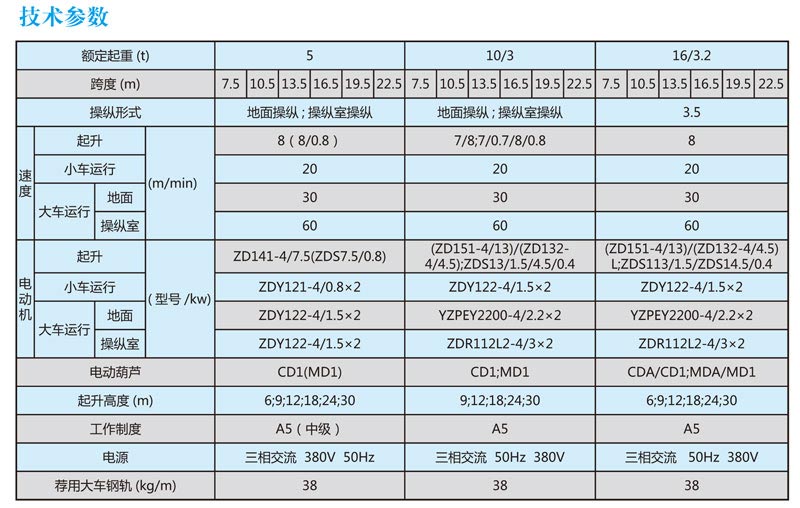 LH型電動(dòng)葫蘆橋式起重機(jī)。具有外形尺寸緊湊、建筑凈空高度低、自重輕、輪壓小等優(yōu)點(diǎn)。適用于機(jī)械加工車間、冶金、倉庫、料場(chǎng)、電站等,它也可以替代普通雙梁橋式起重機(jī)。起重量為1-50T,跨度為7.5-35.5米,工作級(jí)別為A3--A5,工作環(huán)境溫度為-25℃--40℃。