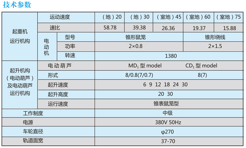 LD型具有結(jié)構(gòu)合理,整機剛性強的特點。整機與CD1型、MD1型電動葫蘆配套使用,是一種輕小型起重機械。起重量為1-32T,跨度為5.5-35.5米,工作級別為A3,工作環(huán)境溫度為-25℃--40℃。