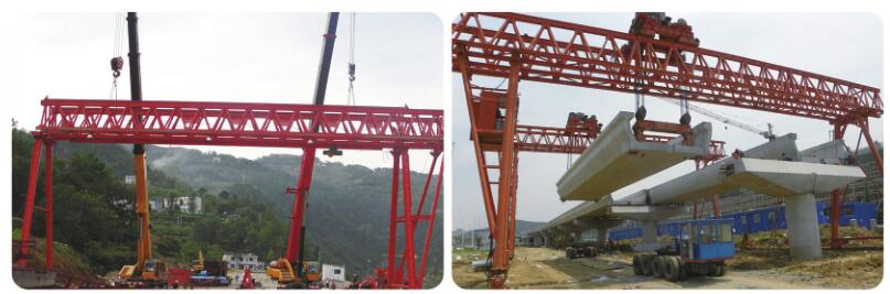 提梁機(jī)的功能:提梁機(jī)既可兩臺配合抬吊預(yù)制梁,也可以單臺起重機(jī)配雙吊具起吊預(yù)制梁,兩臺同時起重的提梁機(jī)各自的起重量一般為 450 噸,單臺起重的提 梁機(jī)起重量通常可達(dá) 900 噸。它配置支腿行走、天車行走及天車起吊設(shè)備,可以實現(xiàn)機(jī)械化動作。主要用于將預(yù)制梁從制梁臺提吊至存梁臺位,預(yù)制梁養(yǎng)護(hù) 完成后將其從存梁臺位吊運到運梁車上。作為起重設(shè)備完成架橋機(jī)的組裝和拆卸。還用于架設(shè)墩身不高的旱橋。